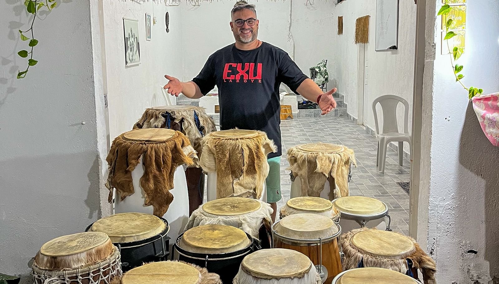 SÃO 45 ANOS VIVIDOS DENTRO DO TERREIRO E MAIS DE 20 ANOS ENSINANDO O ATABAQUE COM RESPEITO, FUNDAMENTO E AMOR À TRADIÇÃO AFRO-BRASILEIRA.